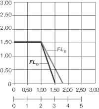 能力線図(フリースパン走行) X軸 : フリースパン長さ (m) FLB/FLG Y軸 : 収納ケーブル重量 (kg/m) 下部目盛り : ストロークS (m) FLB = ベント走行(たわみが許容範囲内) FLG = 水平走行(推奨取付け方法) ご注意: フリースパン長さは、動きの正方向のみ