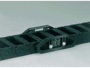 240型用スライドガイドシステム「オートグライド」。1000 - 2000 mm毎に、樹脂製の特殊スライドガイドエレメントをチェーンリンク側面に取付けます。 エナジーチェーン側面から正確なガイドを行い、きれいなスライドを実現します。