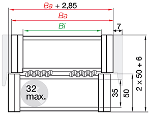 注意:2つのグライドシューの幅を確保するために、チェーン外幅に14㎜追加する必要があります。