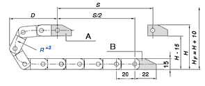 ピッチ : 20 mm(1リンクあたり) = 50リンク/m