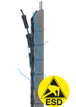 ジッパー ESD エナジーチェーン 高い実用性と性能 「ジッパー」機能が取付時間を短縮 小さなピッチ、堅牢で柔軟なジッパーバンド、そして強力リンクが高加速使用に適応。「ジッパー」シリーズはイグスエナジーチェーン中で、高負荷領域での使用で特に選択される製品シリーズです。