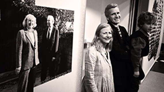 創業者のブラーゼ夫妻の写真の前での現在のブラーゼ夫妻
