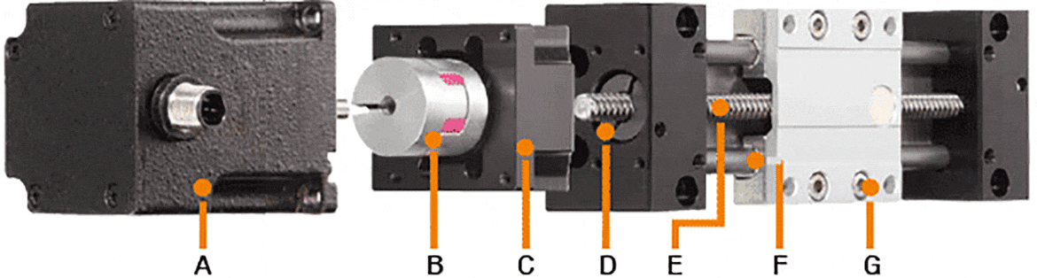 スライドテーブルとモータの組合せのためのスペーサ、モータフランジ、カップリング