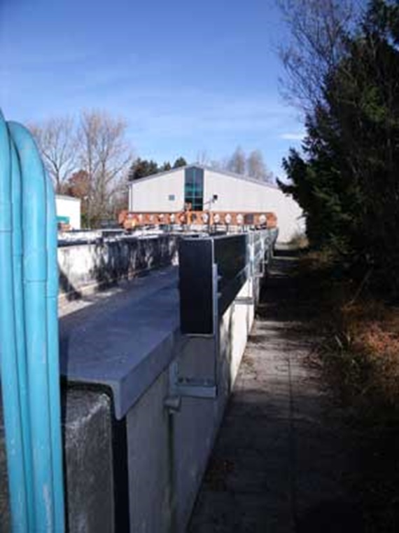 ケンプテンの浄水施設にある長手方向の濾過橋