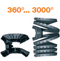 最小スペースでの回転動作 - 軸に沿って20回転 ツイスターバンドは限られたスペースで低摩耗、低メンテナンスで経済的に各種ケーブルを保護する、非常にコンパクトな保護管です。