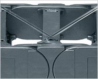 回転運動にツイスターチェーン - 回転走行する機械をサポートする保護管ツイスターチェーンは、幅広い製品ラインアップを揃えています。 ツイスターチェーンは、ガイドチャンネルと組合せることで、以下のメリットが得られます: エナジーチェーンのガイドが可能、チェーンの摩耗を低減、静音走行、最大360°までの回転が可能。 ガイドチャンネルはモジュラー式なので、長いチェーンやさまざまな曲げ半径・角度にも対応します。