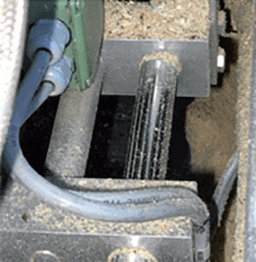 ドライリン リニアガイドは、汚れや埃に非常に強いという特性を備えています。油や潤滑剤が不要なため、汚れ粒子が残油またはグリス分に固着することがありません。また、ガイドレール上の汚れ粒子は、樹脂製スライド部が掻き落し装置のように働き、レールから排除されます。シーリングがないため、汚れはベアリングから押し出され、汚れによるベアリングの圧力上昇もありません。極端に汚れが激しくスライド部が摩耗した際も、スライド部を簡単に交換できます。