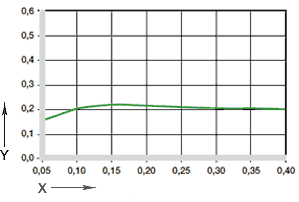 図03は、ラジアル荷重下での、イグリデュールA180の弾性変形です。 最大推奨面圧20 Mpaでは、変形率は2,5 %未満です。 塑性変形は、このラジアル荷重まで負荷を加えても、ほとんど発生しません。 この結果は、作用時間によって異なります。