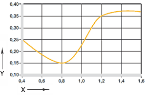 最大推奨面圧は、材質の機械的特性を示します。 したがって、摩擦特性への言及はできません。 温度上昇と共に、イグリデュールJ350製すべり軸受の圧縮強度は低下します。 図02は、この関係を明確にしました。
