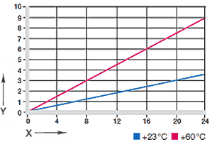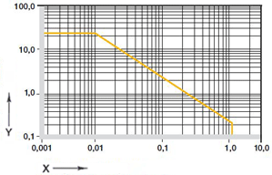 イグリデュールR製スライドベアリングは、高い滑り速度に適します。 直線運動では、短期で10m/sまで可能です。ここで示された最大値は、最低の圧縮荷重で達成可能な値です。 ここに示された数値は速度で、その速度では、摩擦によって上昇した温度が長期許容温度の限界値まで達します。