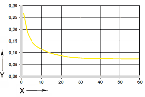 Y = 内径Øの縮小 [%]