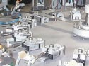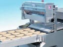 グリッパーは焼きたて食品をベルトコンベヤーから取り上げ、かごに入れます。