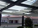 この装置を用いれば、例えばテラスに屋根の機能を持たせることができます。 この屋根は、畳んだ状態で撥水効果を持ちます。