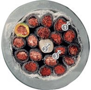 例えばいわゆる「ケーブル保護管に適した」とされるケーブルでも、中間層の撚りをホイルまたはメリヤス状の布により被覆しています。撚りを被覆することで、線心と編組シールドを分離しないようにしています。しかし、こういった対策は固定ケーブルには良好に機能しても、可動ケーブルの場合にはきわめて不十分となることがあります。ホイルやメリヤス状の布は、撚り、シールド、そして外被の間に結合力を生むことがなく、応力が掛かった状態ではそれぞれが分離してしまうことがあります。この結果、金属製のシールドが線心の絶縁体と擦れ合うようになり、短絡の発生の可能性が大きくなるのです。