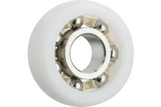 内輪・外輪との間に、ボールやころを挟むことによって摩擦を減らす軸受です。支える荷重の方向、材質などによって制御のしやすさ、使える環境、耐久性などが異なります。